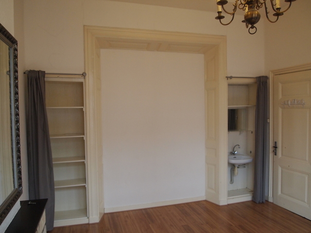 Located at the Hugo de Grootstraat on the 1st floor. Big windows with covering, light equipments on the ceiling and laminate on the floor. Storage/wardrobe in the living room.